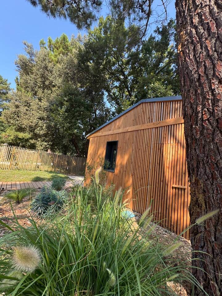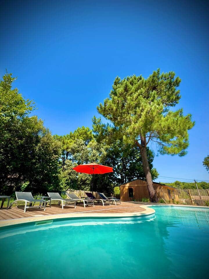 La piscine (17 m, non chauffée, partagée) est équipée d’une bâche motorisée de sécurité, conformément à la législation française. Les voyageurs restent responsables de leur propre sécurité et de la surveillance de leurs enfants lors de son utilisation. Accès de 10h à 19h en saison, réservé uniquement aux voyageurs (pas de visiteurs extérieurs).